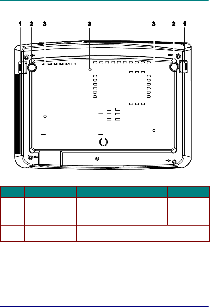 Ceiling support holes Contact your dealer for information on mounting the projector on a